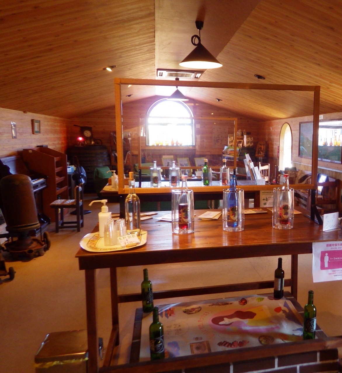 勝沼ぶどう郷駅よりタクシー(約5分)で向かいました。2階建ての戸建て住宅のような建物の2階がワインショップとテイスティングルームになっています。