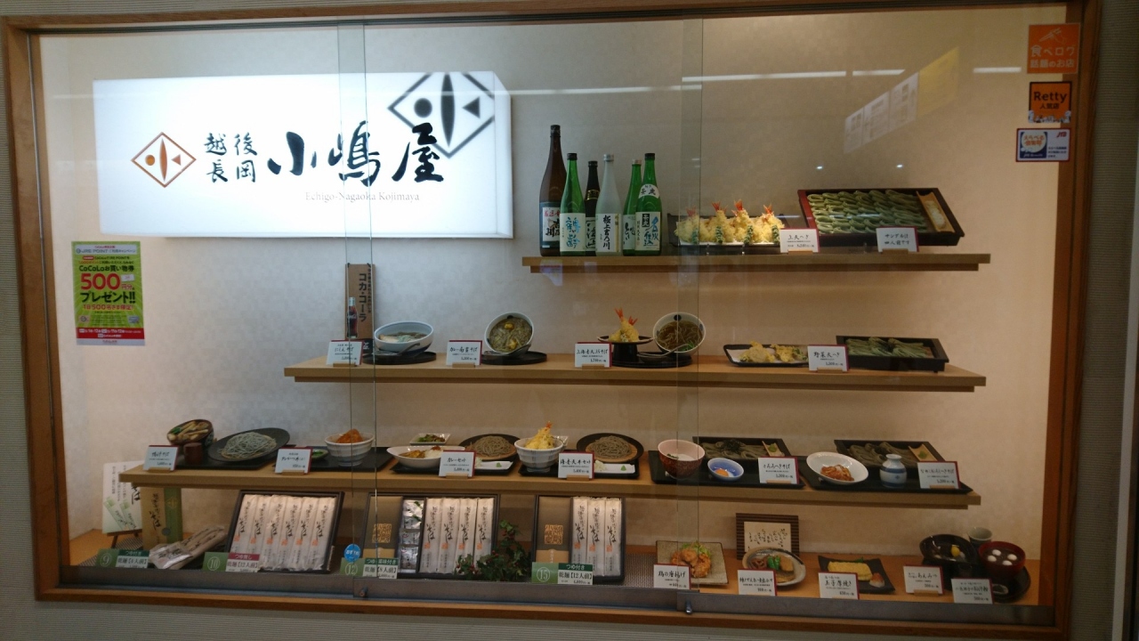 新潟駅構内CoCoLo東館1階、改札出た目の前にあります。テーブル間隔が広めで、カウンター席もあるので、一人旅でも利用しやすいです。新潟名物「へぎそば」発祥の小嶋屋の直営店です。新潟ご当地グルメの「タレかつ丼」と「へぎそば」のセットもあります。丼や単品、セットメニューも豊富です。