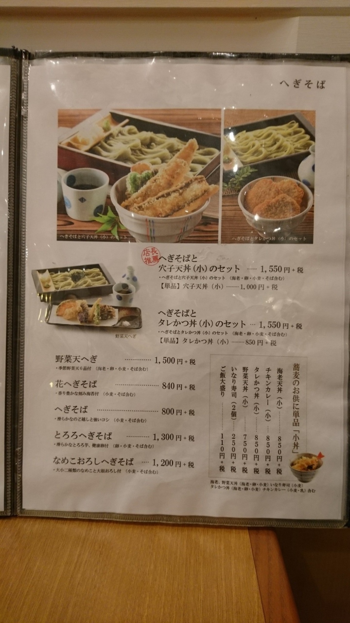 へぎそば(800円)上天ぷら盛合せ(1,340円)と日本酒を注文しました。「へぎそば」は、のど越しがよくコシが強くて、濃い目のつゆがちょうどいい具合でした。天ぷらは、香ばしくてカリッとしていて、美味しかったです。