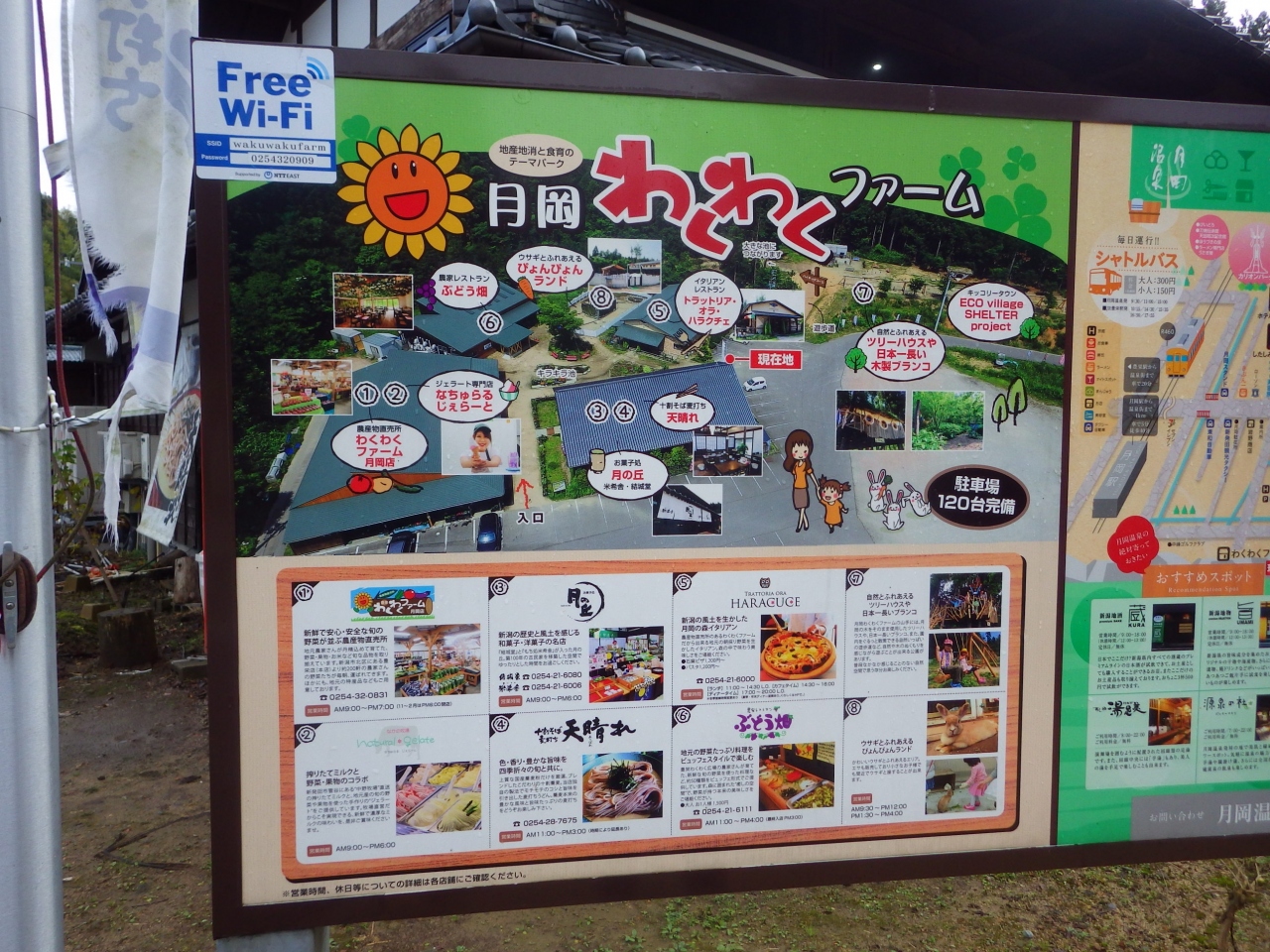 月岡温泉街付近に、山林に囲まれた広大な駐車場と建物があります。自動車で来る人が多いようですが、月岡温泉に宿泊した翌日に歩いて行きました(徒歩約5分)。