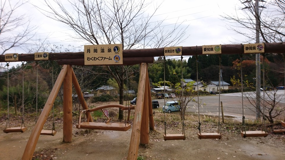 ツリーハウス、日本一長い木製ブランコ、ぴょんぴょんランドもあり、家族連れに人気のようです。各ブランコには47都道府県の名前とそれぞれの都道府県の花が書かれたボードが設置されています。子供の時以来のブランコ、気持ちよくて楽しくて、いつまでも遊んでいられそうでした。- 旅行時期