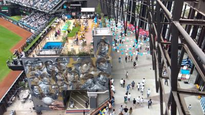 「TOWER 11」1Fコンコース側の壁面に、背番号「11」をつけていたダルビッシュ選手と大谷選手のウォールアートがあり、フォトスポットになっていました。
