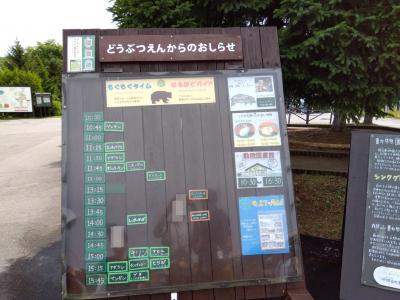「正門」から入り、「どうぶつえんからのおしらせ」掲示板で「もぐもぐタイム」と「なるほどガイド」のスケジュールをチェック、みなさん写メしていました。