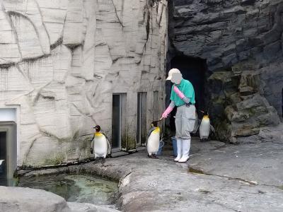 「もぐもぐタイム」は、10時45分「ペンギン」、11時45分「オランウータン」、14時「レッサーパンダ」、15時「キリン」を見に行きました。