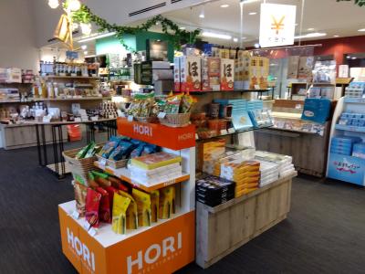2階の出発ロビーの国内線エリアにはフードコート、国際線エリアには土産店があります。土産店は7店舗、どうしても買いたかった期間限定の「三方六めろん」が販売されていたのは「AIRPORT LILAS」だけでした。店舗によって多少品揃えが違うようです。