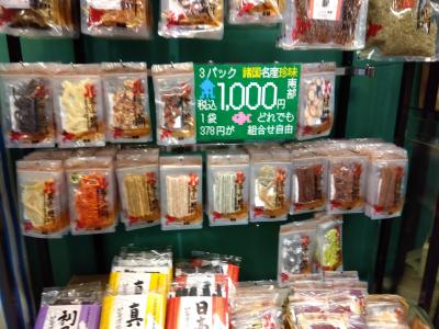 七味唐辛子、さしみこんにゃく、うどん、グミ、こがねいも(和菓子)を購入しました。