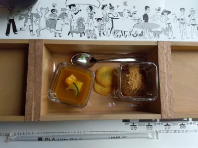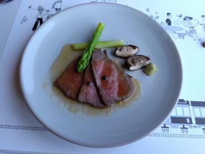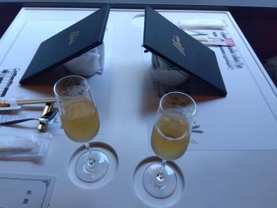 発車後は、ドリンクのオーダー、前菜、メインディッシュ、食事、デザートの順に運ばれ、