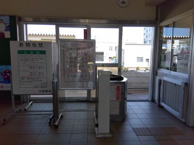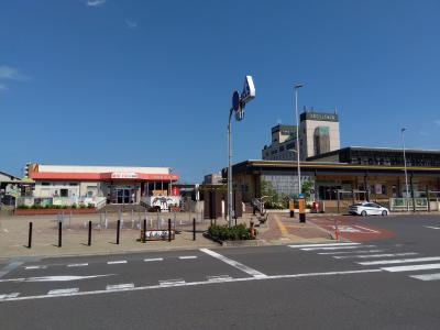 JRの駅舎は2013年に琥珀をイメージしたオシャレな駅舎に改装、待合室は広くてキレイで居心地がよかったです。