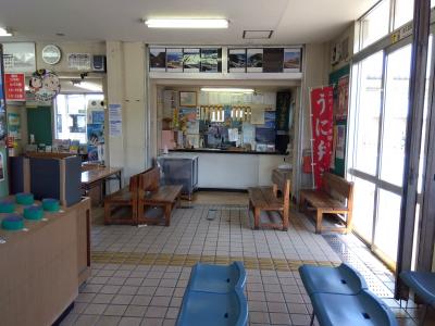 三陸鉄道の駅舎には、観光案内所、土産コーナー(三鉄オリジナルグッズ、特産品の販売)、三陸リアス亭(ウニ弁当の販売、うどん・そばの提供)、券売機がありました。