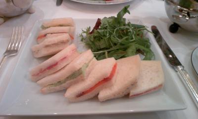 お値段はホテル並ですが、見てください!このサンドイッチ!しょぼーい!しかもちょっと焼いているのか?ってくらいパサついてる。これにケーキと紅茶がつきます。(ケーキは美味しいですよ)