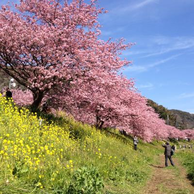 両親と、湯河原の梅林を見た後、河津桜まつりへ。