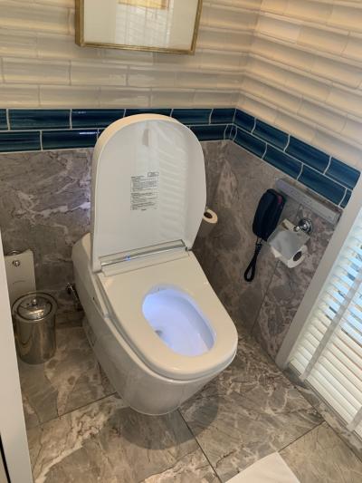 お手洗いはシャワートイレ世界のtoto 蓋も自動に上がります。