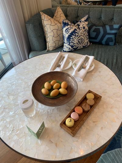 ウェルカムフルーツは多分マンゴーの小さいヤツだと思う。あと、マカロン。...