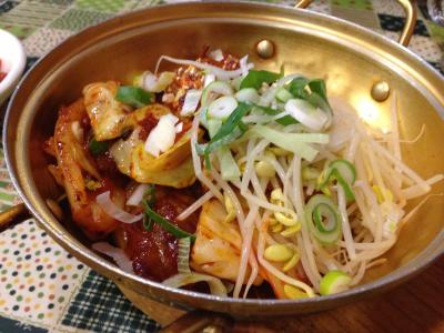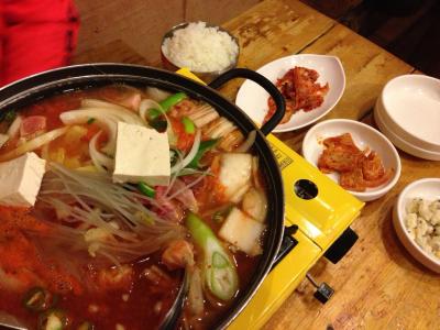 キムチチゲ2人前、ご飯、生ビール3杯で12500w