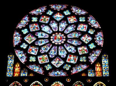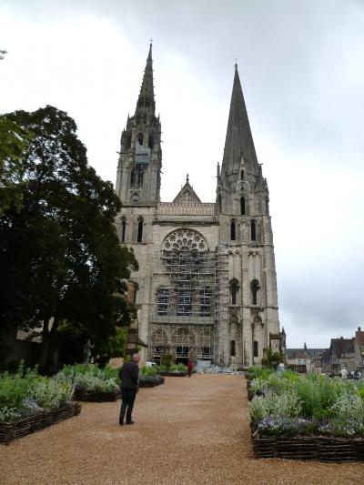 大聖堂正面。ちょうど一番有名なバラ窓のあたりが外装工事中でした。