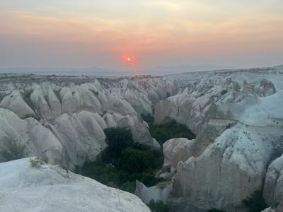 姉妹岩。展望台になっていてお客さんが沢山。順番にガイドさんと添乗員さん...