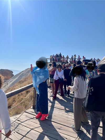 姉妹岩。展望台になっていてお客さんが沢山。順番にガイドさんと添乗員さん...