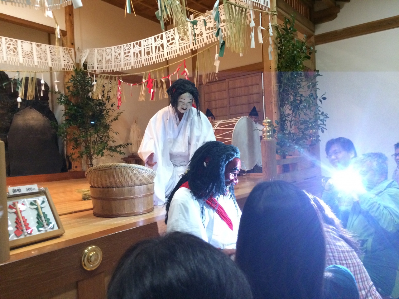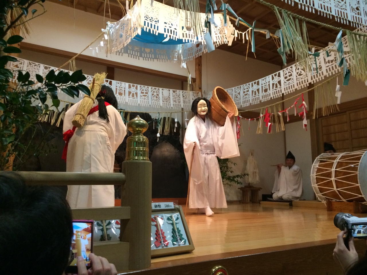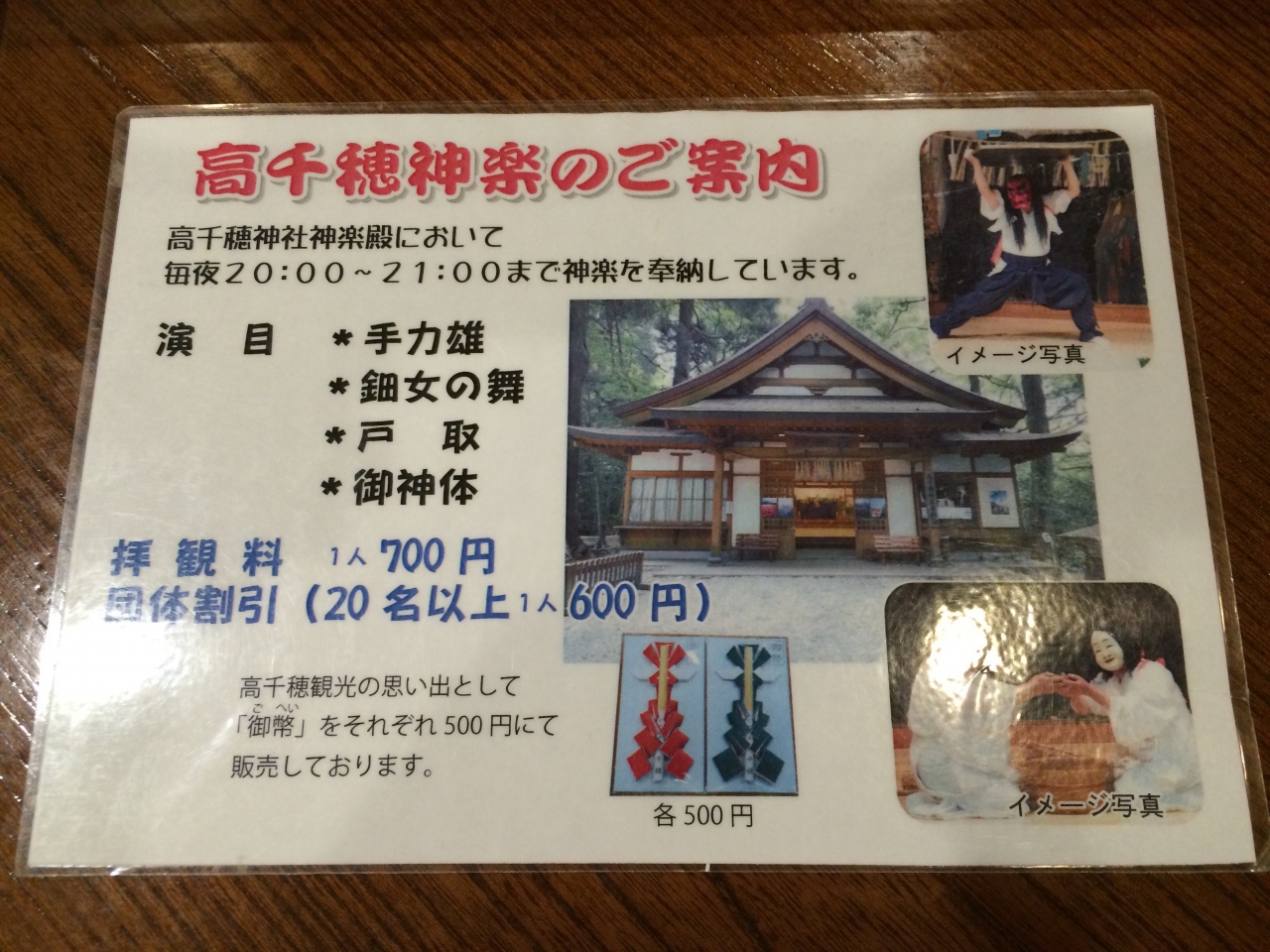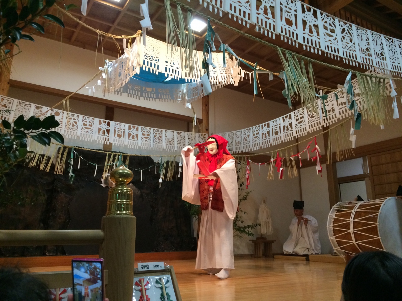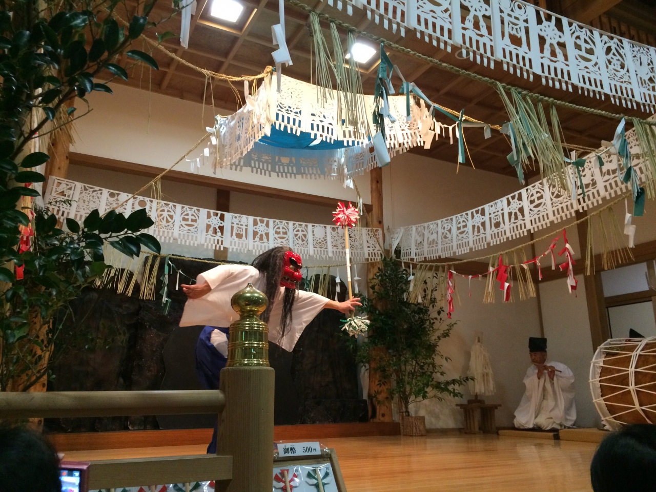 スタートは夜の8時で、参拝料は700円。演目は33番のうちの代表的な4番「手力雄の舞」「鈿女の舞」「戸取の舞」「御神体の舞」が振舞われます。