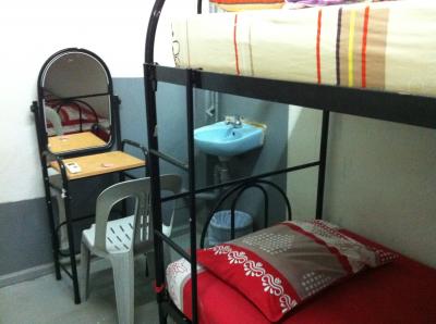 シングルベッドは階段の下にあるので、起き上がる時、気をつけないと頭を壁にぶつけてしまいます。この部屋だと本来は60SGドル!うーん、さすがにシンガポールの宿代は高いですね。