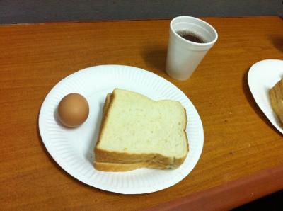 朝食は、パンとゆで卵が付いていました。- 旅行時期