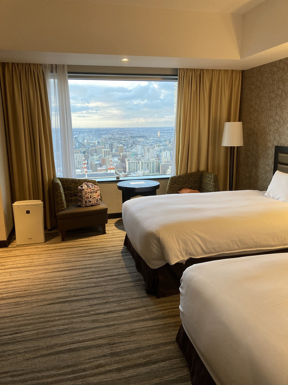 長らく札幌で止まってみたいホテルの一つでした。何時も混んでいましたが、今回はやっとのことでかないました。部屋からの眺望もよく、朝食レストランでは札幌の東西南北がおいしいバイキング料理とともに堪能できました。立地も抜群で、札幌駅直結で、駅の南の赤レンガ庁舎や大通公園、北の北大方面へも徒歩圏。また泊まってみたいホテル加えたいと思います。