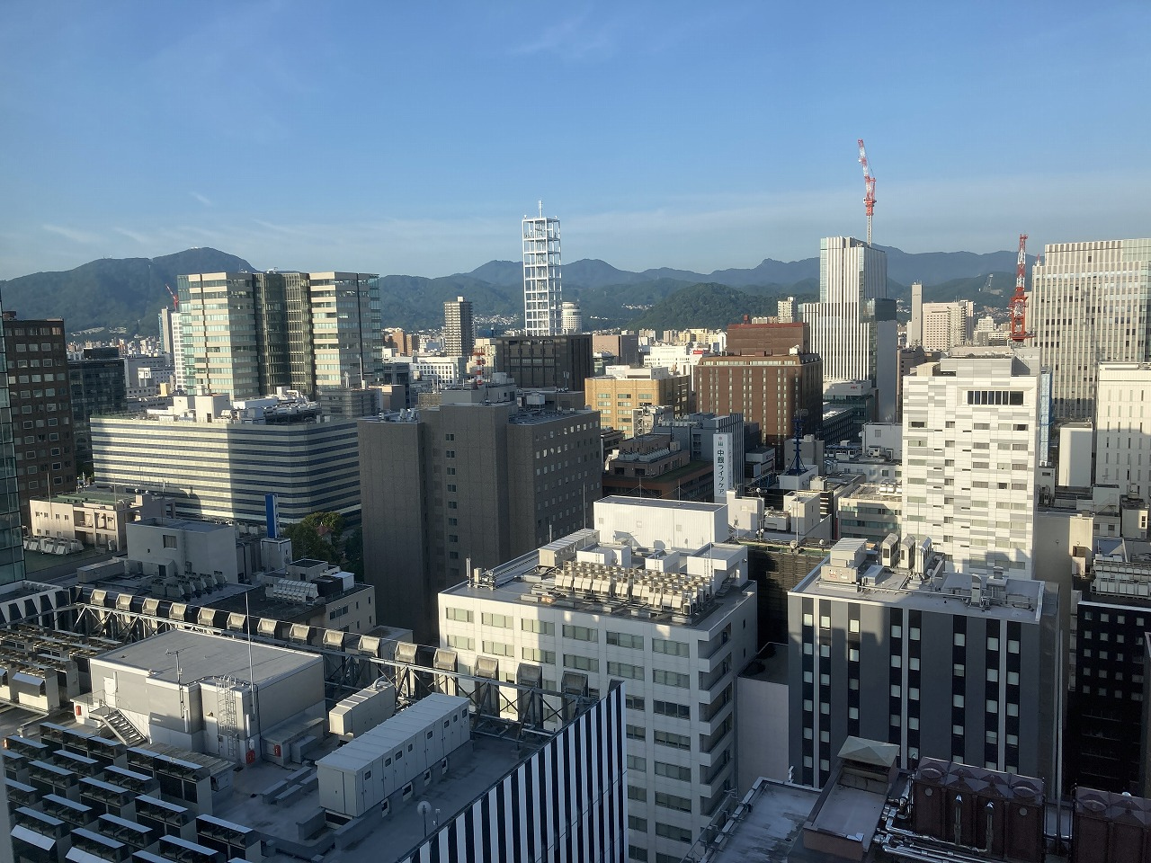札幌駅から南に歩いた創成川に面したところにオーストリア風のホテルの入り口があります。レセプションも、エレベータも、館内はウイーンを基調としているんだそうです。19階の西に開いた窓の部屋でした。部屋の調度やバスルームは使いやすい配置でした。西に向いた部屋からは眼下に札幌の中心街が見まわたせ、また遠くには石狩方面から小樽の山、そして手稲山から藻岩山、宮森ジャンプ台や円山が遠望でき、札幌の街と周りの自然がよくわかるビューが楽しめました。1階のロビー脇の部屋にはコーヒーフリーのくつろげる部屋がありました。朝食のブッフェは北海道産の食材が豊富な美味しい料理が楽しめました。ロケーションもよく、北大、道庁、時計台、大通り公園などなども徒歩圏です。