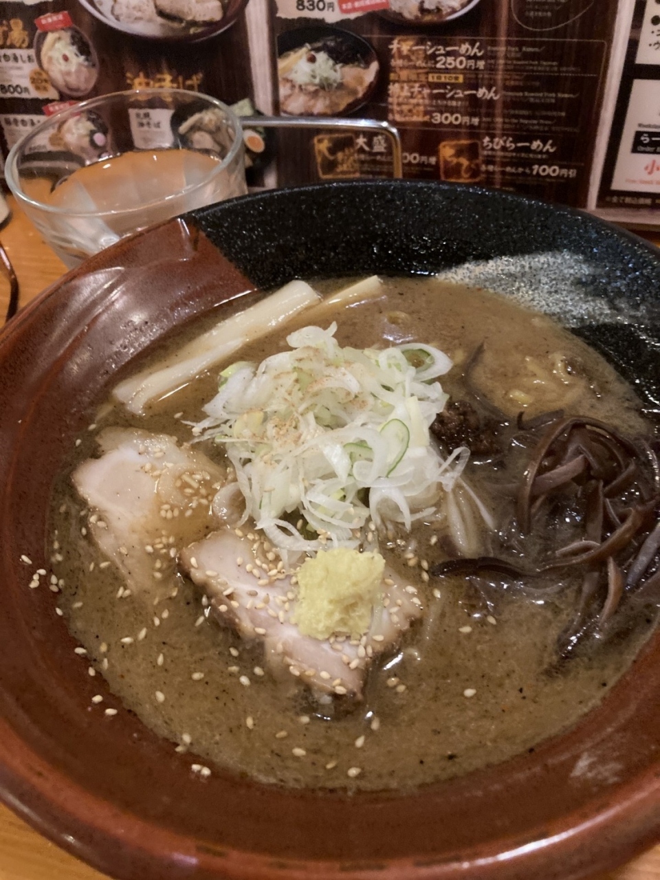 昼前だったのですぐにカウンターに案内され、注文後あまり待たず届きました。味噌の濃厚味にチャーシュー、メンマ、キクラゲ、白ごま。縮れ麺がからみホロホロのチャーシュウがうまい。