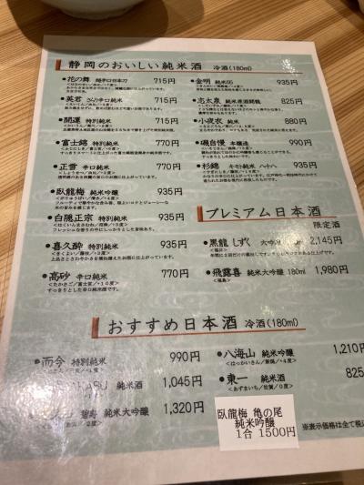 静岡駅のすぐ近くの高架下がのお店。新築なのでしょうか木の香りがするような雰囲気のお店でした。6時過ぎの訪問でしたが、混雑していてちょっと待たされました。静岡の清酒も10数種ありうまい料理とともに堪能しました。