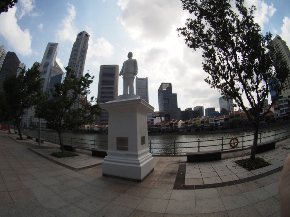 シンガポール川の河口付近の左岸にラッフルズ像が建っています。この辺りが上陸した所なんでしょうね。上陸当時は直ぐ先のフォートキャニングの丘が熱帯雨林を通して見えたことでしょう。今は川沿いの遊歩道となっており右岸にはビルが林立しています。