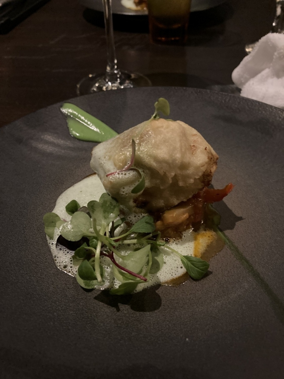 円山の裏参道にある地下にはいるお店。室内は黒を基調にして落ち着く。10人ほど入る個室の大人4名幼児2名の利用でゆったりと食事ができました。大人はコース、幼児にはお子様ディナーというような料理をお願いしたようです。我々の古希祝いもかねての豪華なフレンチ、ワインもうまく、大変いいお店でした。