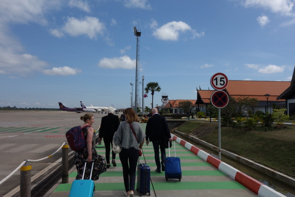 宮古島空港を大きくしたような空港。飛行機への搭乗、降機はタラップのみ。歩いてターミナルに出入します。入るとアライバルビザ申請窓口がずらり並び、先にパスポートコントロール。日本人なら難なく通過。手荷物チェックも申請なしのカードを渡し通過。