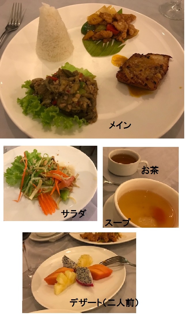 メインは前菜と思える量であり、また味も皆同じ。スープは薄い塩味で出汁もまるで無し、デザートのフルーツは切れ端が出てきたようなものです。