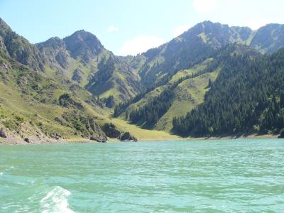 ウルムチ市内から約2時間、緑が増えてきたと思うと天池に到着。このあたり...