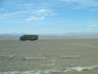 トルファンへ向かう2時間半の間、ほとんどがこんなゴビの中を走る。でもウ...