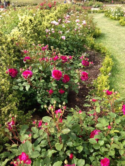 ローズガーデン、バラが見ごろの時に行くときれいです!駐車場も入場料も無料なので行って損はないかと思います。お弁当をたべれる芝生の広場もあります。遊具などはないですが、バラの前で写真をパチリ! 芝生の広場でお弁当を食べたりボール投げをしたり、結構一日のんびりと楽しめます