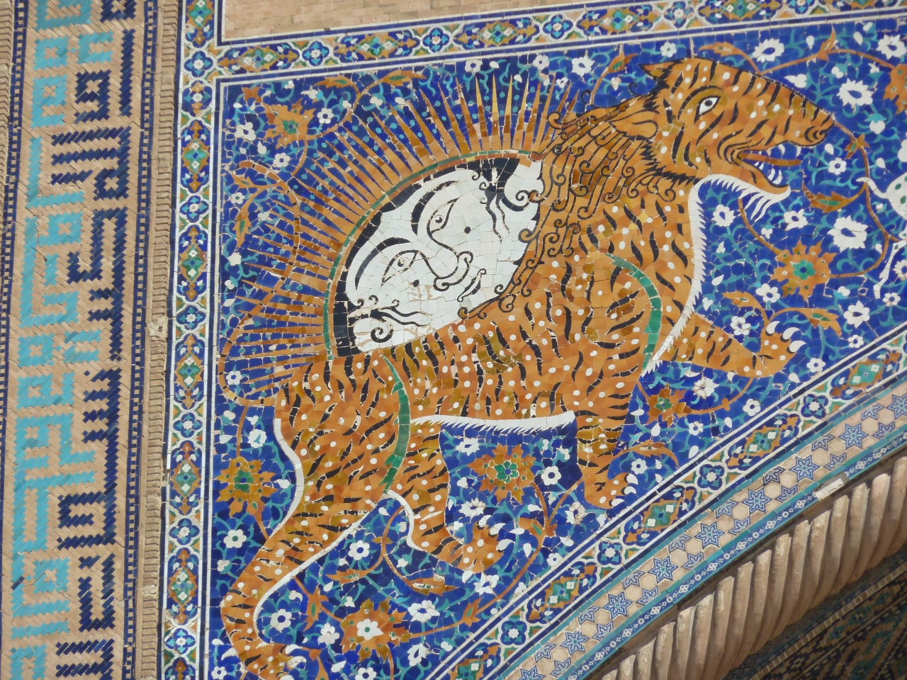 ちなみに、同様の人の顔模様はブハラのナディール・ティヴァンベキ・メドレセでも見ることが出来ます。