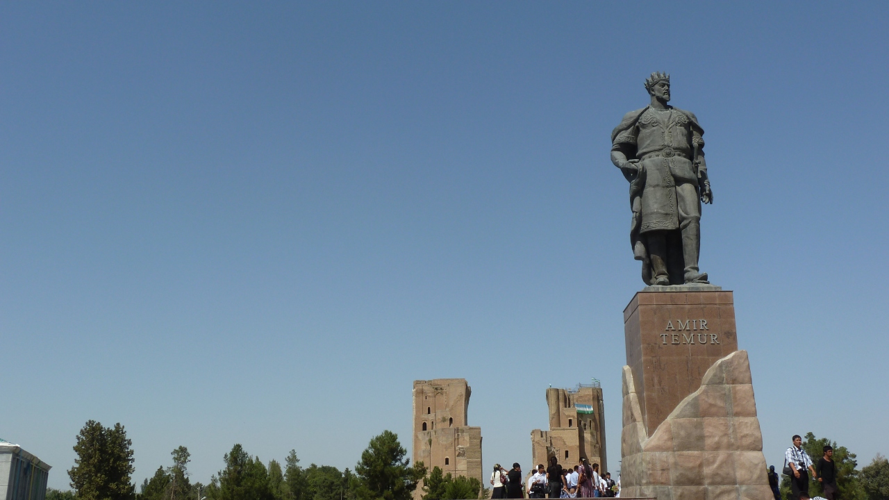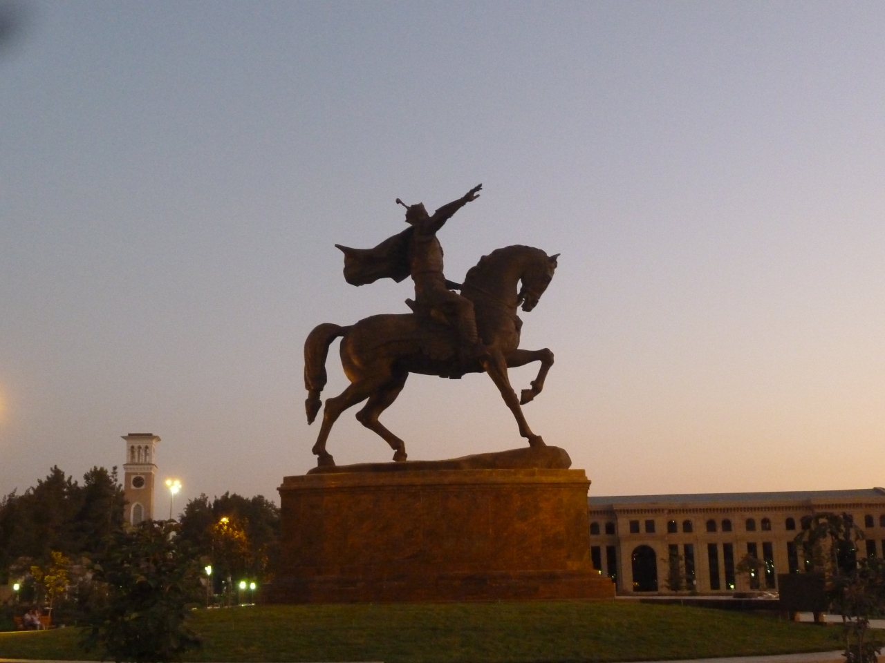正面にはスックと立つティムール像。ウズベキスタンはどこに行ってもティムールに会えますけどね。