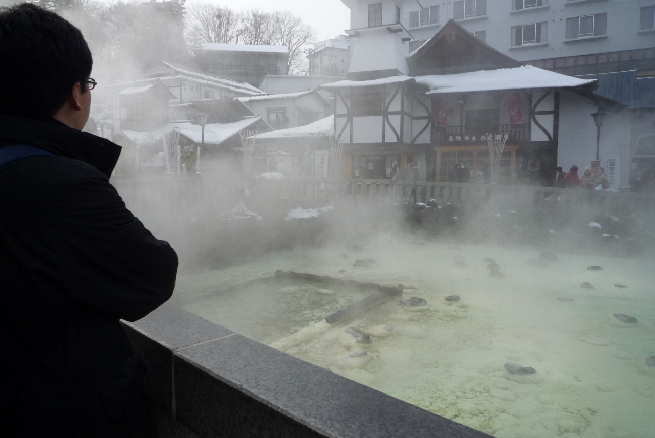 一番お手軽なのは、湯畑すぐ横の「白旗の湯」。