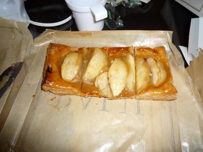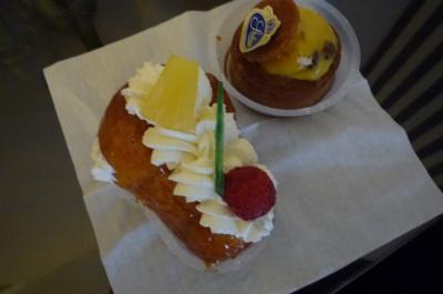ホテル近くのお店で、夜のおやつにチェリータルトとアップルパイを購入。