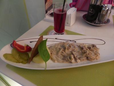 早めのディナーで来店しました。大きな通りから少し奥に入ったところにあります。入口の手前にクロークがあり、専任のスタッフがいます。店内はモダンな雰囲気で、若いスタッフ中心でした。英語も通じるし、写真付きメニューもあります。ドリンクメニューはロシア語のみと言われました。ビーフストロガノフ580ルーブルを注文しましたが、量は多くはなかったです。味は上品でおいしく、盛り付けもおしゃれでした。