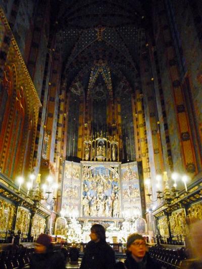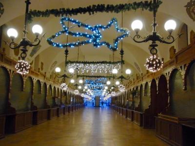 クラクフ旧市街の中心地です。元旦は織物会館のお店はすべてやっていませんでしたが、中を通り抜けることはできました。広場では年明け後もクリスマスマーケットをやっていて、賑やかでした。チョコがけの果物を売っている屋台があったのですが、安くてとてもおいしかったです。