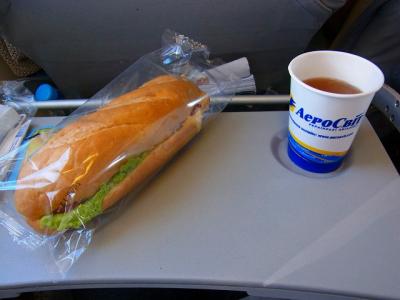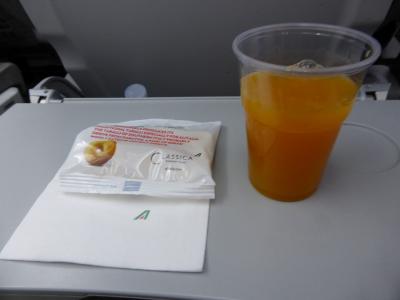 ローマ・フィウチミーノ発チュニス行きの便を利用しました。成田からエティハド航空を利用してアブダビ乗継でローマまで来たのですが、同日乗継だったのでスーツケースは成田からチュニスまでスルーでした。CAは女性一人で後は全員男性だったのが印象的でした。一通りやることが終わったら、後ろでみんなで座って談笑していたのがイタリアっぽいな~と思いました。短距離線なので出たのはドリンクとスナックのみでした。