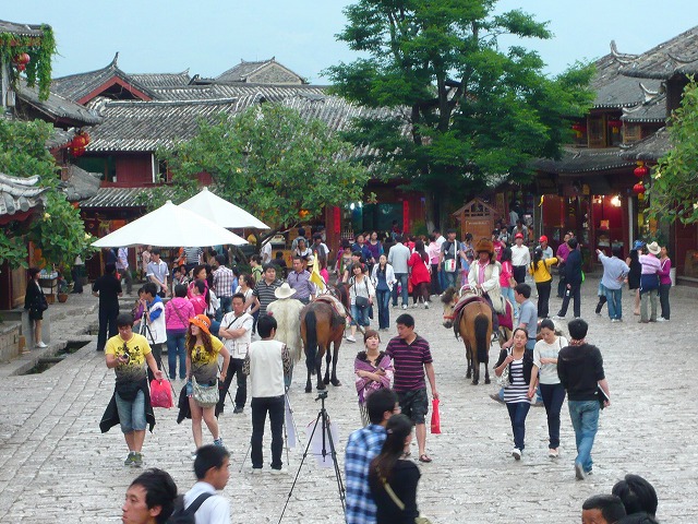 香格里拉(シャングリラ)という、デチェンチベット族自治州というエリアにあるチベット族の町にあるチベット寺院です。チケット売り場でチケットを買った後、シャトルバスでお寺まで行きます。入場料は85元でした。雲南省のポタラ宮と呼ばれる美しいお寺です。麗江よりもさらに標高が高いので、階段を上がるだけで一苦労でした。内部は撮影禁止なので写真はありませんが、今まで行った仏教寺院とは明らかに違う空気を感じました。金色の仏像が数体ありましたが、ピカピカしすぎず、上品な姿でした。中には数人のお坊さんがお経を唱えていて、他の人の真似をしてお布施を置いたら、経典みたいなもので頭をばしばし叩かれ、数珠をもらえたり、オレンジの紐をかけてくれることも。