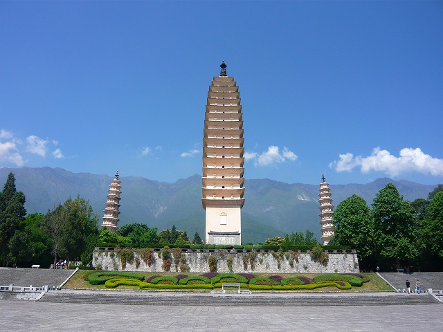 敷地は広いです。有名な3つの塔は一番手前にあり、塔の裏には池があって、また表とは違う顔を見ることができます。その奥にはお寺のような建物が数軒続きます・・と言っても間隔はけっこうあるので、歩くのがとても疲れました。