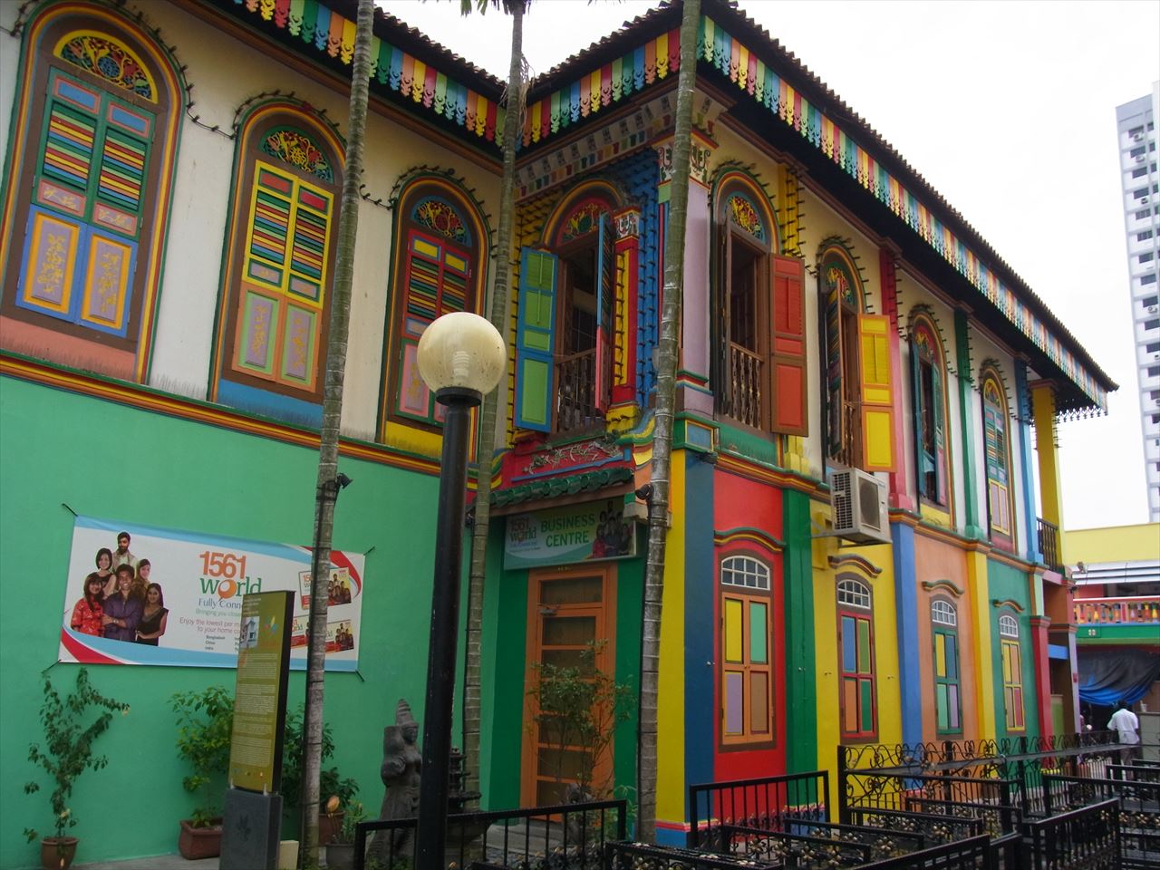 アラブストリートから歩いて行きましたが、途中から一気に街並みが変わりました。ヴィヴィッドな色合いの建物(でも古め)が増え、歩く人もインド人率が上がりました。中でもタン・テンニア氏邸宅跡はひときわ目立つ派手派手カラーなので一見の価値があると思います。