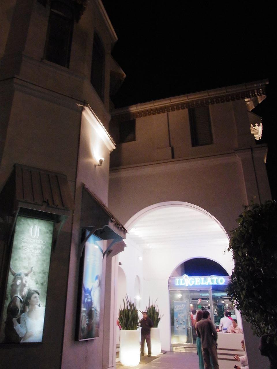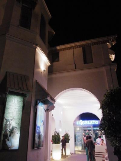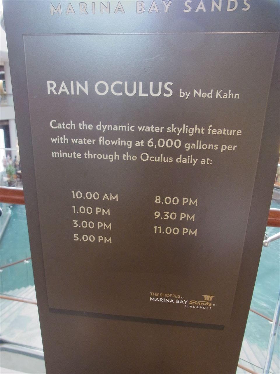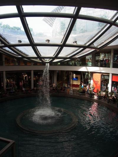 サンズの展望台に行った帰りにちらっと立ち寄りました。マカオのヴェネチアンみたいな雰囲気で、運河が流れています。その一角に普段は上から水がちょろちょろ流れている場所がありますが、一日に数回、その水のちょっとしたショーがあります。上から見ると大渦になっています。