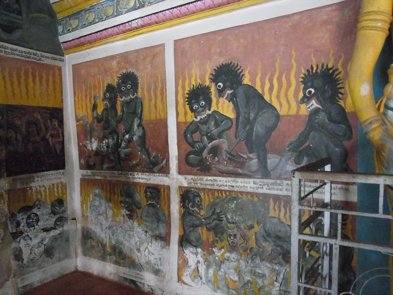 ダンブッラからキャンディへ向かう時に寄りました。入場料250ルピー。ダンブッラの石窟寺院のように壁画や仏像がありますが、ここで必見なのは地獄絵図です。よく見るとグロいです。地獄絵図を人形で再現したお化け屋敷みたいなものもありました。