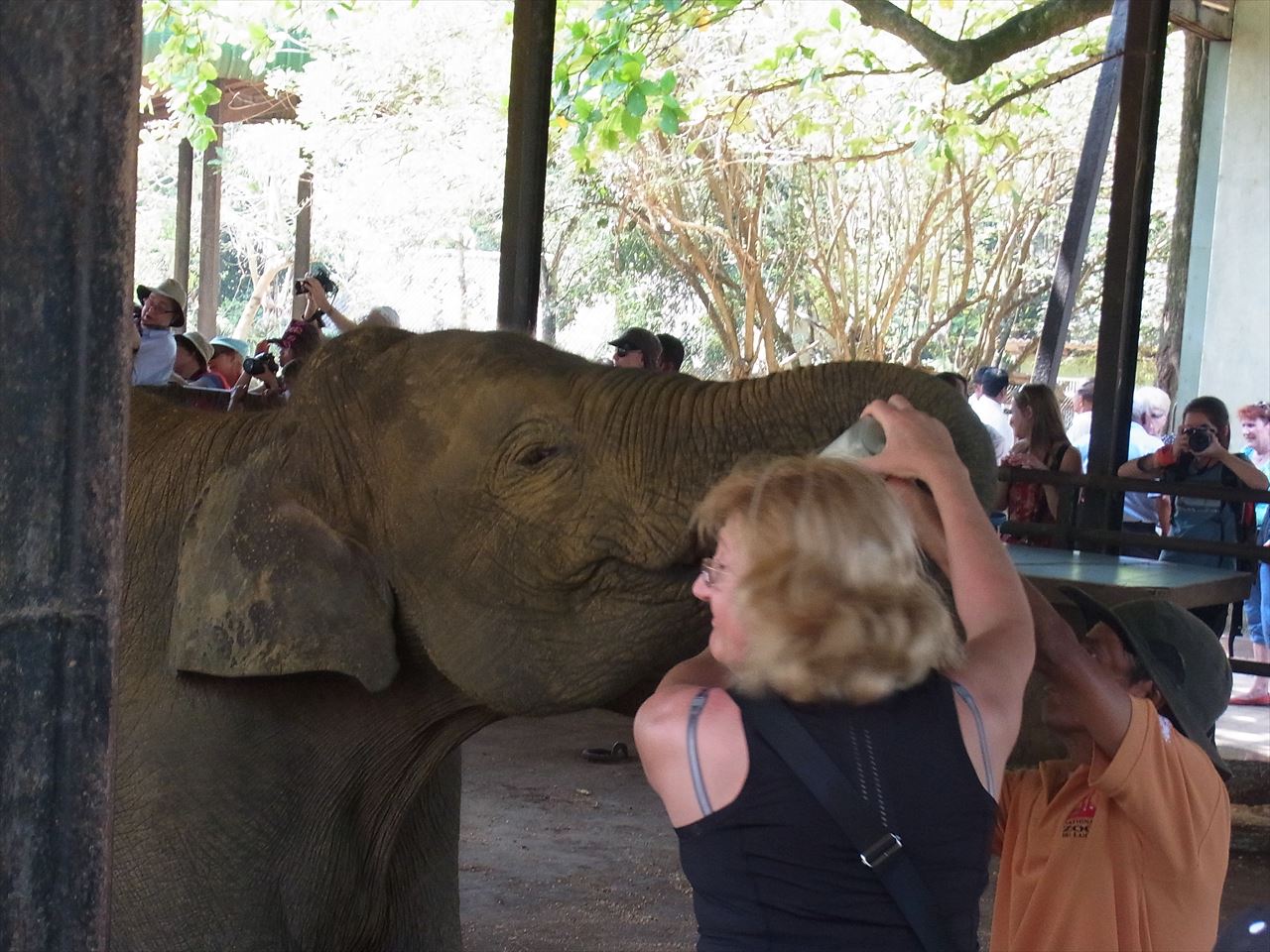 入場料2000ルピーでした。一日数回、ミルクタイム+水浴びタイムがあり、それに合わせて訪れるといいでしょう。ミルクタイムには別料金でミルクをあげることができます。チケット売り場でチケットを買うこともできるようですが、その場でお金を払ってあげることもできました(250ルピー)。水浴びは外に出て、川まで歩いて移動しなければなりません。流れに乗って付いて行けば大丈夫ですが、知らないと水浴びを見逃す可能性もあります。