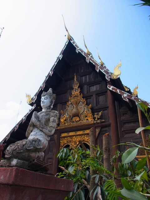 ターペー門から続く道沿いにあるため、アクセスは便利です。チェンマイで最初に行ったお寺でしたが、暗い色の木材にキラキラの装飾、そして穏やかな顔の仏像にすっかりチェンマイのお寺の虜になりました。ぐるっと裏手に回って建築美も堪能してください。