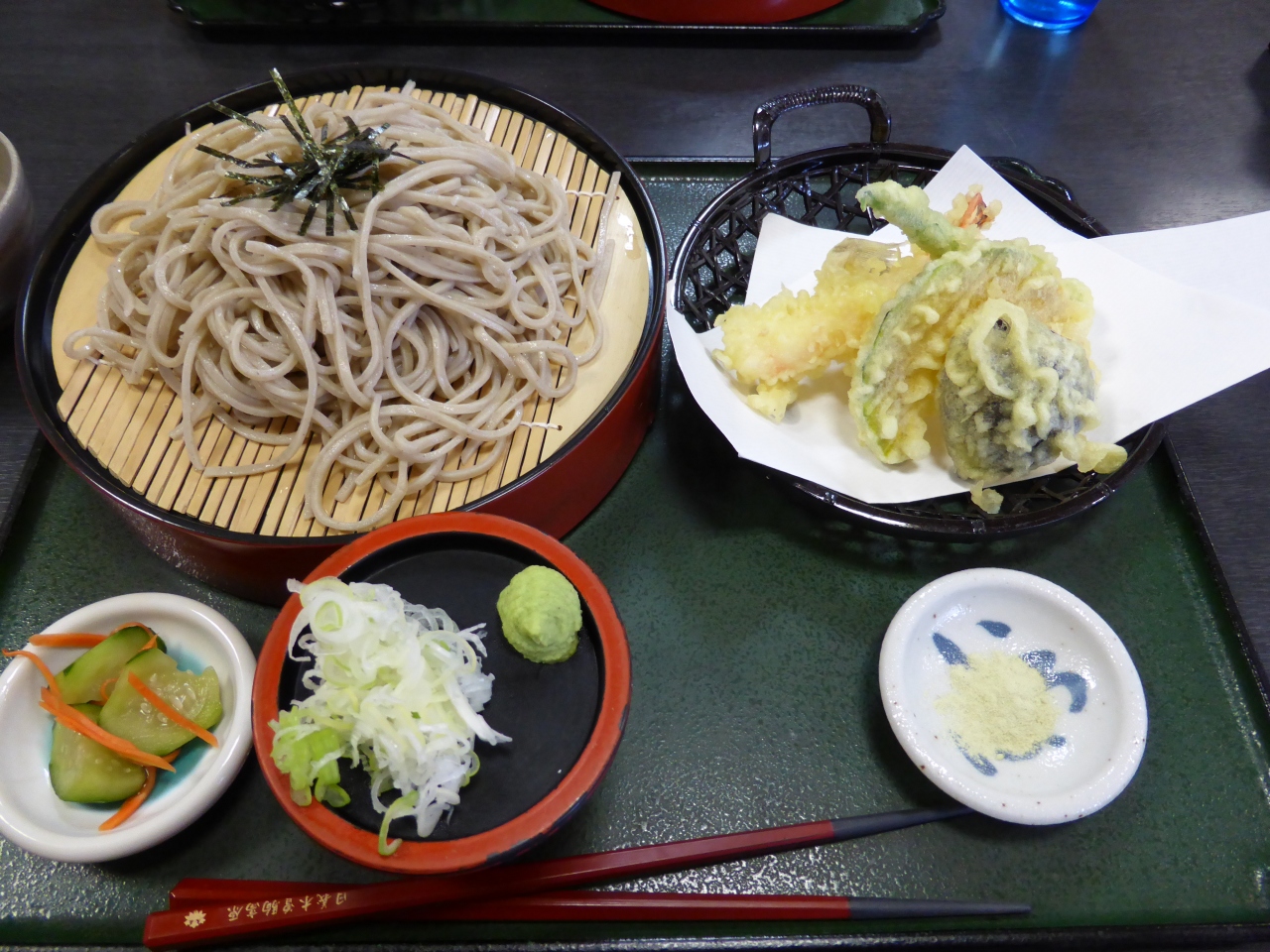 妻籠宿から奈良井宿に向かう途中、奈良井宿で昼食を取ろうと思っていたけれど、お腹が空きすぎたところでちょうど道の駅を見つけて入りました。道の駅のお蕎麦だからと、それほど期待していませんでしたが、ちゃんと石臼で挽いたお蕎麦でとってもおいしかったです。天ざるそば¥1100で、天ぷらも揚げたてでおいしかった。他にも野菜がたくさん売っていました。